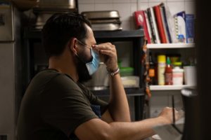 Le port du masque est systématique en cuisine, bien que difficilement supportable par moment compte tenu de la chaleur dégagée par les plaques de cuisson.