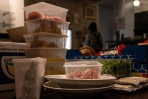 Une fois la salle vide, les « restes » sont nombreux. Ils sont répartis entre les membres de l’équipe afin d’éviter tout gaspillage.